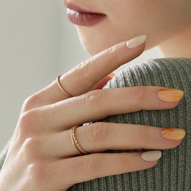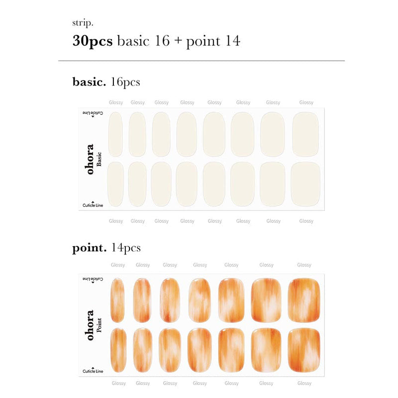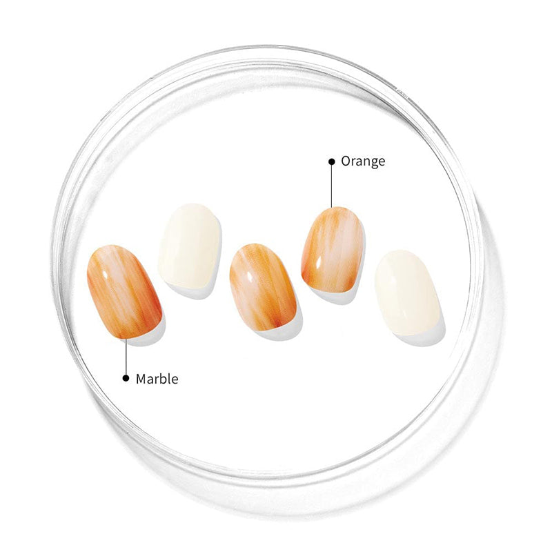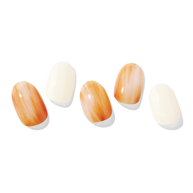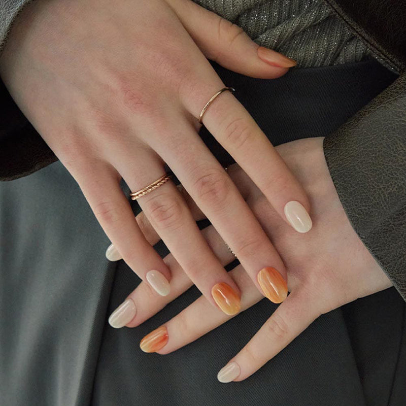 Forkæl dig selv med solnedgangens skønhed med denne sensuelle marmorerede manicure. En kombination af brændt orange og levende hvid gel fanger essensen af solen, der synker ned i horisonten.